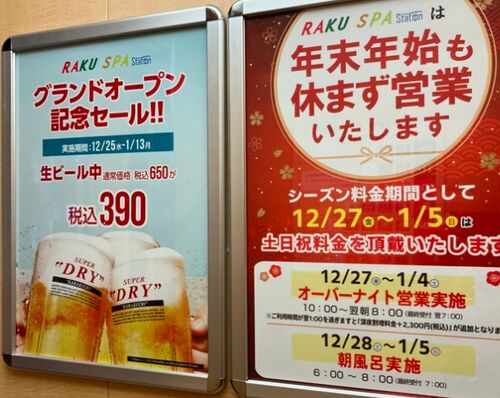 12月にオープンしたばかりのラクスパ府中にきました! 年末年始も休まず営業だって! さらに朝まで営業!オーバーナイトは普段は土日だけらしい。 さらにオープン記念でビールも安い! 1月13日まで! お花も飾られてましたー! リニューアルしたばかりだから…