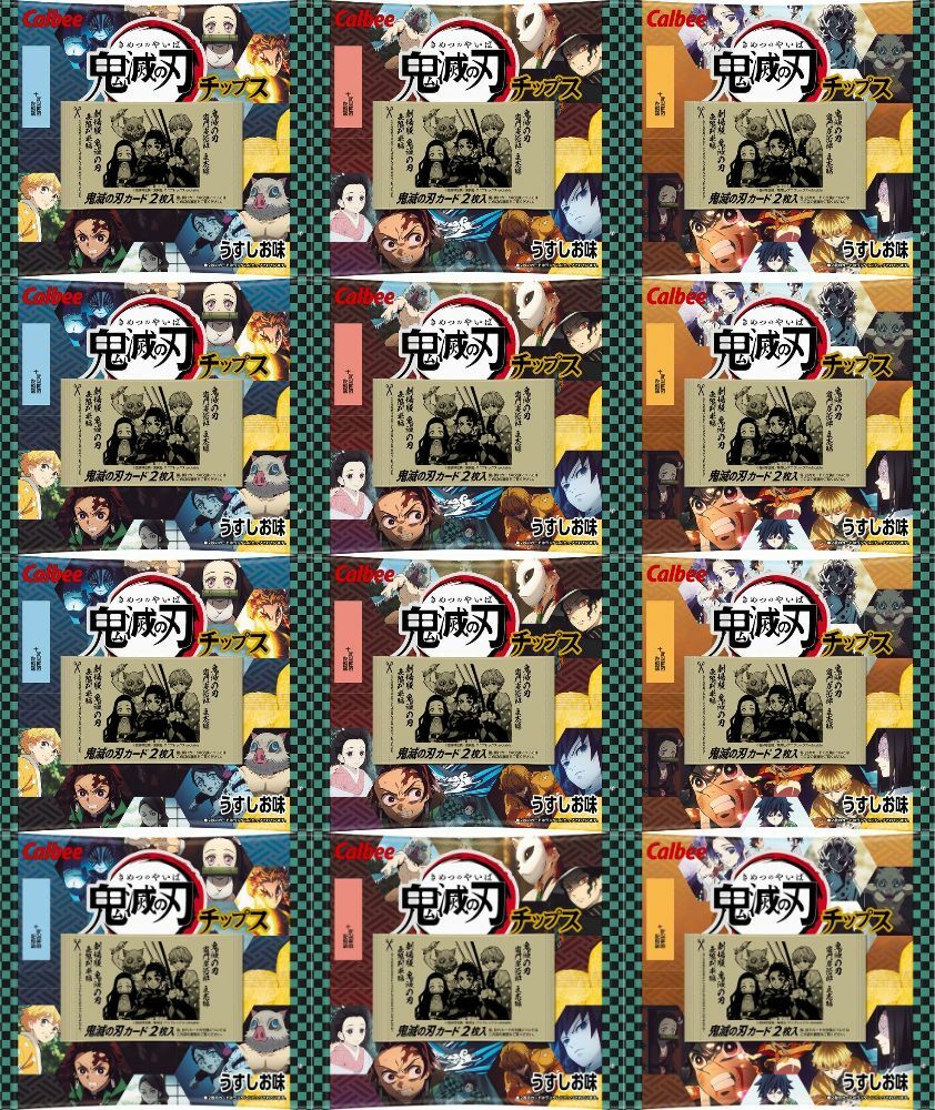【限定品】「鬼滅の刃チップス」×12袋鬼滅の刃カード2枚入り煉獄杏寿郎“炎の呼吸・肆ノ型・盛炎のうねり”、義勇“水の呼吸・拾壱ノ型・凪”など全48種類/カルビー