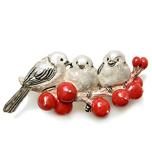 [dear-japan] 帯留め シマエナガ 枝 小鳥 南天 赤 白 グレー ピューター SUU